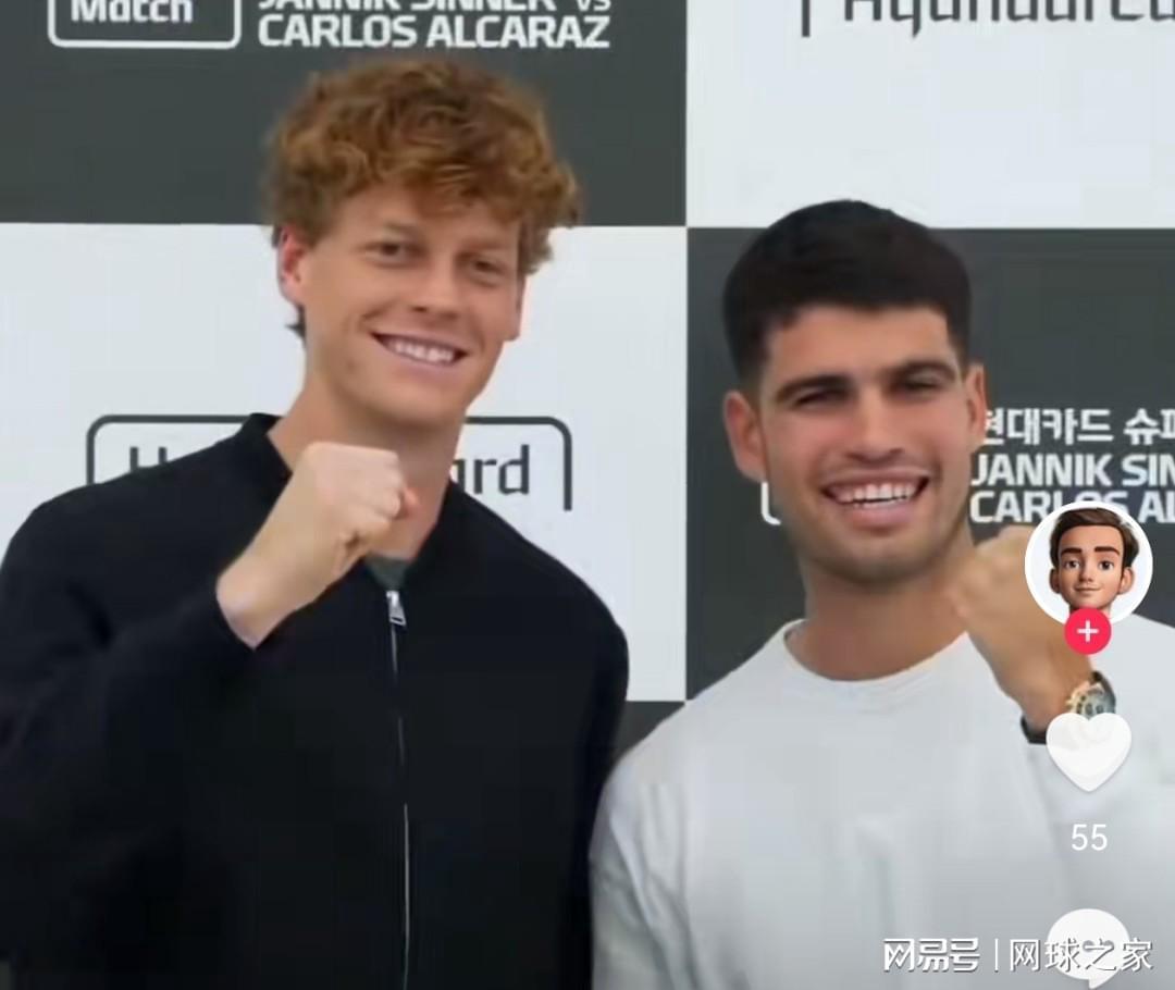 阿尔卡拉斯和辛纳在出席这项名为“现代卡超级比赛”的表演赛新闻发布会时,两人也是满面春风,脸上从始至终都荡漾着开心的笑容。